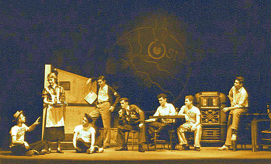 All eyes are on Tom Ryan, extreme left, performing in the stage version of "Bernadine" at the University of Denver in 1954. In 1957 the play was made into a hit movie with Pat Boone playing the lead role. The classic song, "Love Letters in the Sand" was introduced in this film. Tom toured with "Bernadine" to US bases in Korea and Japan in 1961.
