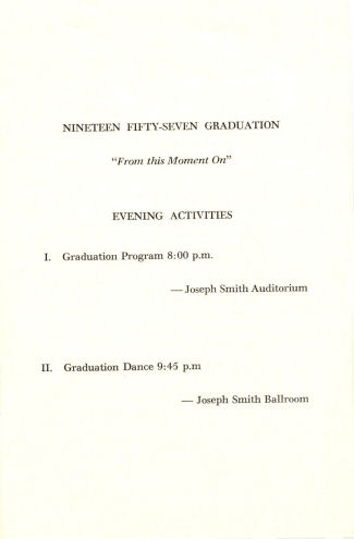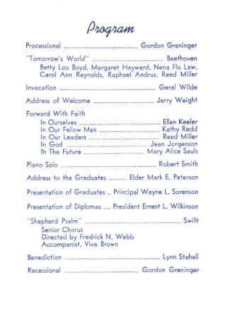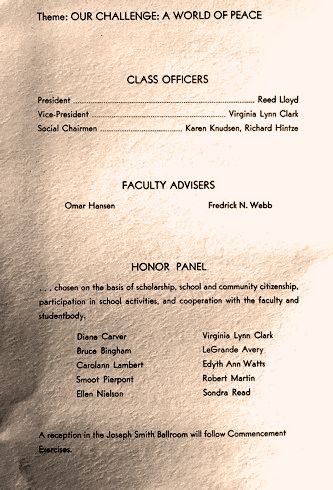 Note: We were not there, but it is quite probable that the five student speeches listed above in this 1936 program turned out to be the most boring, insipid orations ever delivered at any Brigham Young High School Graduation Exercise in history. We extend our belated sympathies to everyone involved in any way.